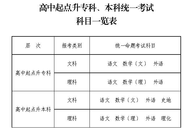 1.高中起點(diǎn)升?、本科統(tǒng)一考試科目一覽表