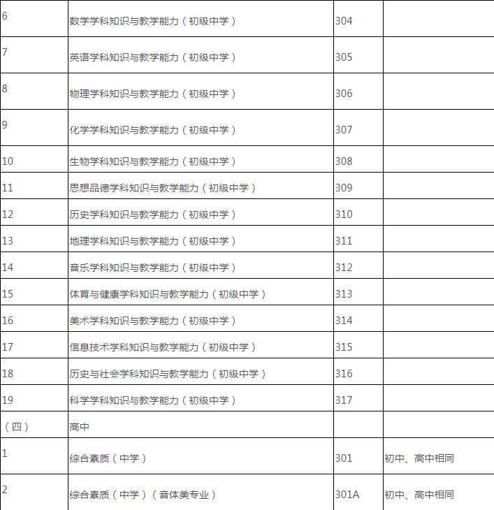 3.2019年上半年中小學(xué)教師資格考試(筆試)科目代碼列表