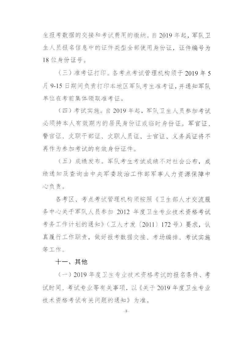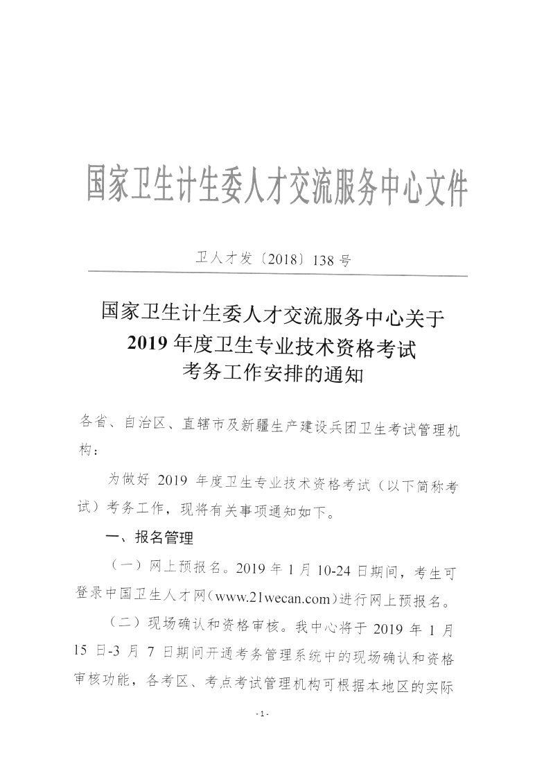 2019年衛(wèi)生專業(yè)技術資格考試考務工作安排通知