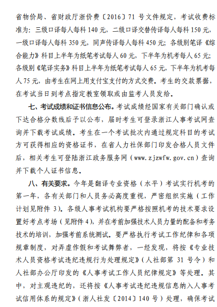 2019年浙江翻譯專業(yè)資格水平考試考務(wù)工作的通知
