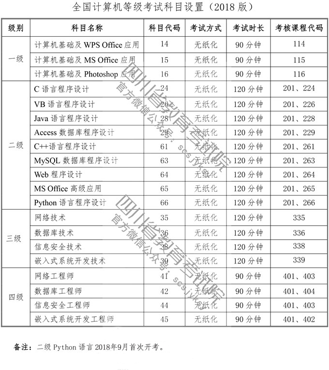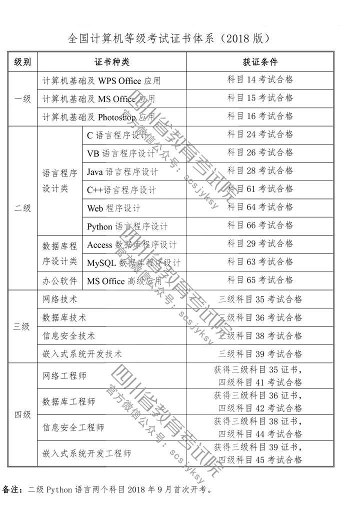 八、NCRE證書(shū)體系、科目設(shè)置、教材列表