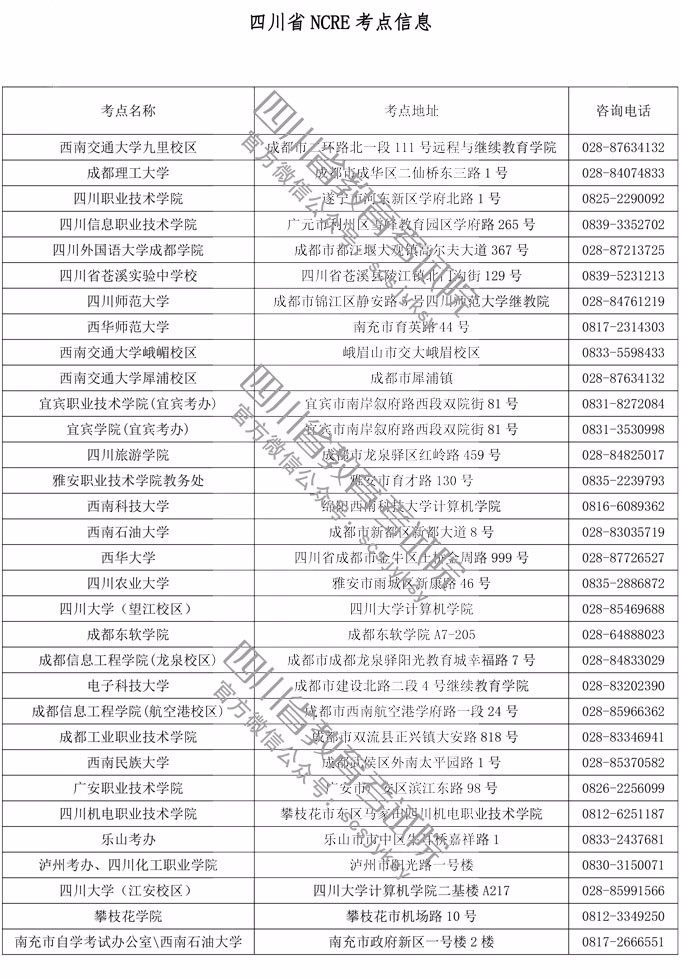 九、四川省NCRE考點(diǎn)信息