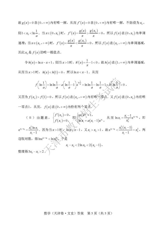 2019年天津高考數(shù)學(xué)答案:數(shù)學(xué)文【已公布】