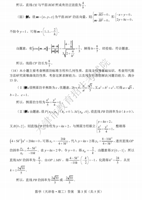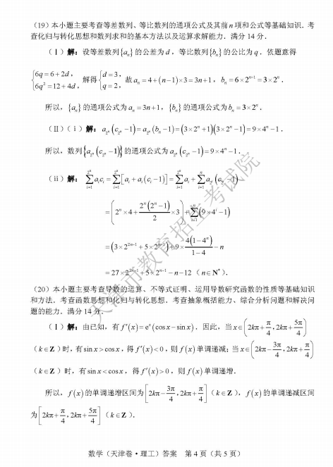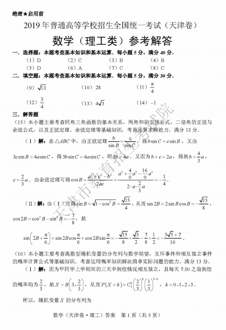 2019年天津高考數(shù)學(xué)答案:數(shù)學(xué)理【已公布】