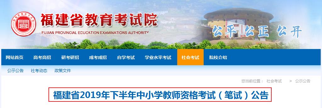 - 2025年下半年福建中小學(xué)教師資格考試筆試公告(7月4日起報(bào)名)