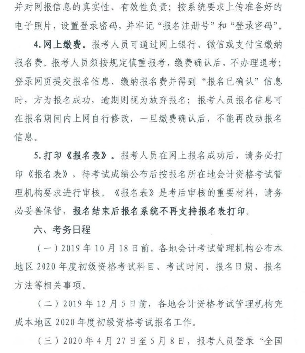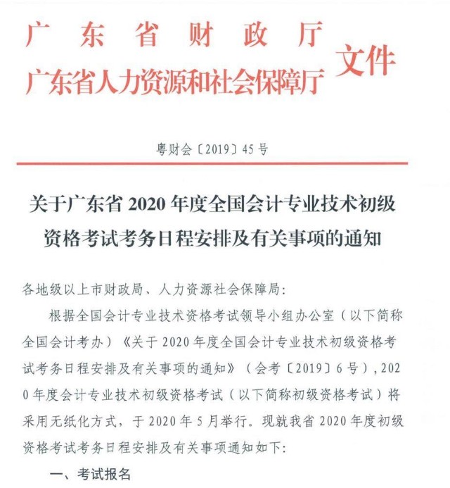 【#會計(jì)職稱考試# #2020年廣東初級會計(jì)職稱考試考務(wù)日程安排及有關(guān)事項(xiàng)的通知#】2020年初級會計(jì)職稱報(bào)名時(shí)間已公布,小編根據(jù)廣東省會計(jì)信息服務(wù)平臺發(fā)布“2020年廣東省初級會計(jì)職稱考試考務(wù)日程安排及有關(guān)事項(xiàng)的通知”本文分享初級會計(jì)職稱報(bào)名時(shí)間、繳費(fèi)時(shí)間、報(bào)名條件、報(bào)名流程等內(nèi)容,具體初級會計(jì)職稱報(bào)名通知如下: