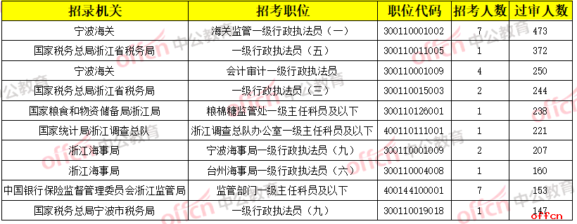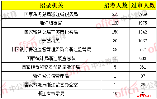 【截至18日9時】2020國考浙江地區(qū)過審人數(shù)最多十大職位