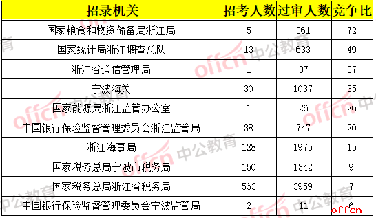【截至18日9時】2020國考浙江地區(qū)過審人數(shù)競爭最激烈十大部門