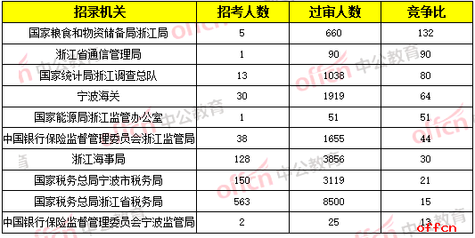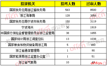 【截至21日9時】2020國考浙江地區(qū)過審人數(shù)競爭最激烈十大部門