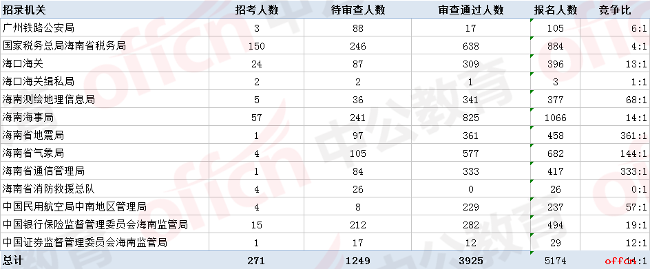 為幫助廣大考生更清晰的了解今日?qǐng)?bào)名情況,©無(wú)憂考網(wǎng)整理了海南地區(qū)各部門(mén)整體報(bào)名情況,供廣大考生參考: