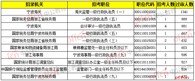 【截至23日9時】2020國考浙江地區(qū)過審人數(shù)最多十大職位