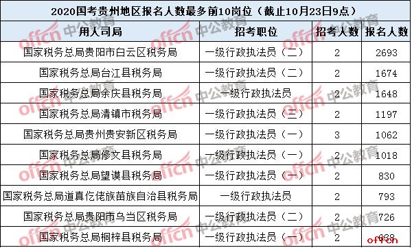 2020國(guó)考貴州地區(qū)報(bào)名人數(shù)最多前10崗位(截止10月23日9點(diǎn))