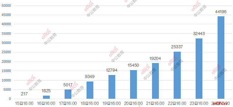 從每日新增報(bào)名人數(shù)可以看出,報(bào)名最后一天的新增報(bào)名人數(shù)最多,單日新增報(bào)名9861人。