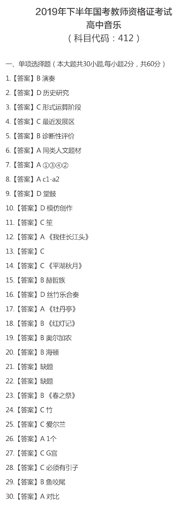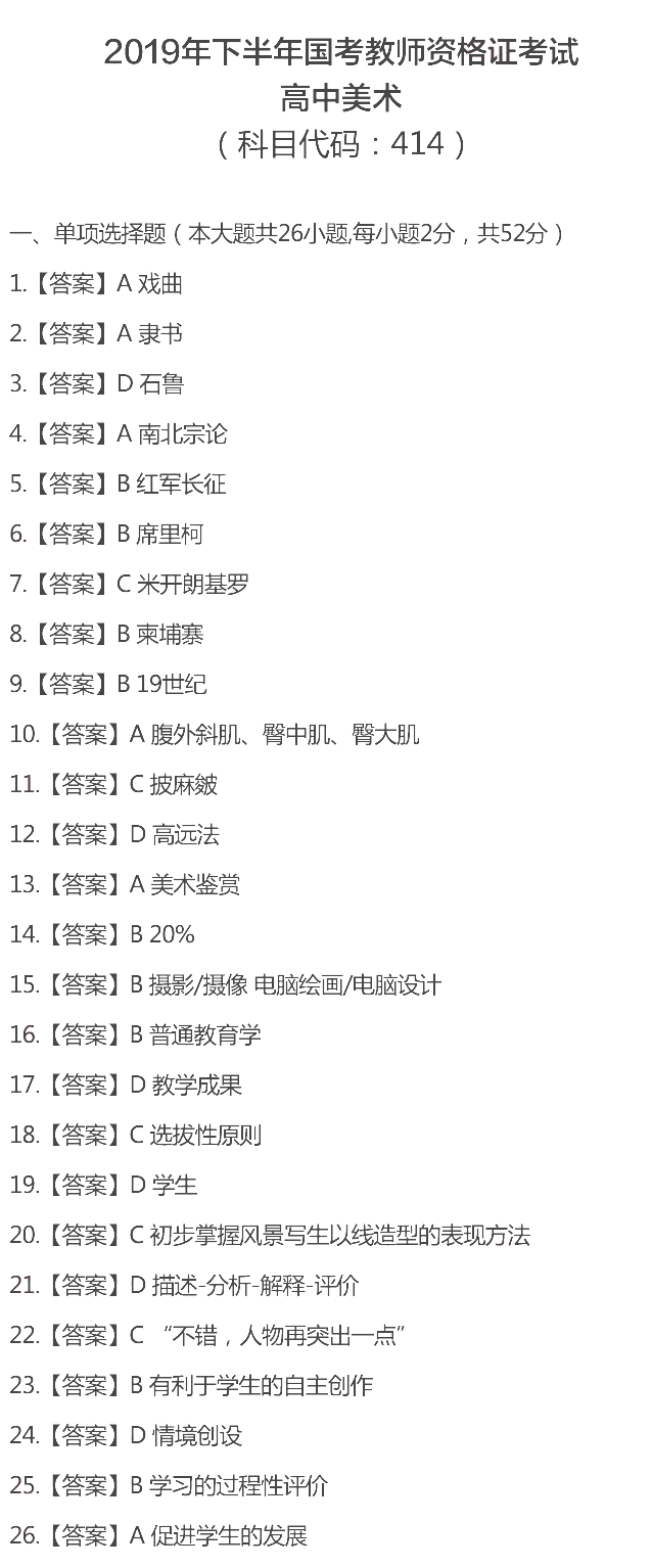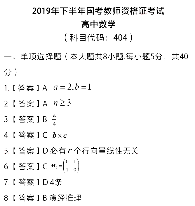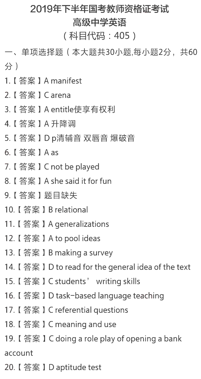 【#教師資格考試# #2019下半年教師資格證《學(xué)科知識與教學(xué)能力》試題答案:高級中學(xué)科目#】2019下半年中小學(xué)教師資格證考試已結(jié)束,©無憂考網(wǎng)教師資格頻道特別整理了考生回憶版的2019下半年教師資格證《學(xué)科知識與教學(xué)能力》試題答案之高級中學(xué)科目,以下內(nèi)容僅供參考。