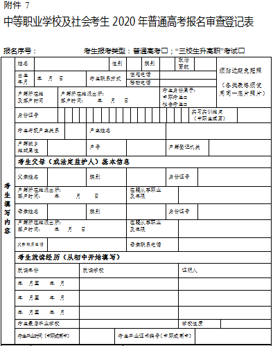7.中等職業(yè)學(xué)校及社會考生2020年普通高考報名審查登記表