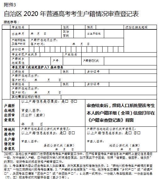 3.自治區(qū)2020年普通高考考生戶籍情況審查登記表