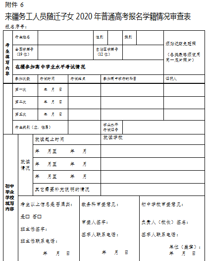 6.來疆務(wù)工人員隨遷子女2020年普通高考報名學(xué)籍情況審查表