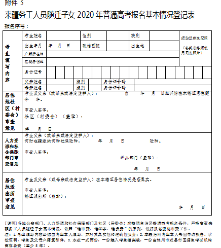 5.來疆務(wù)工人員隨遷子女2020年普通高考報名基本情況登記表