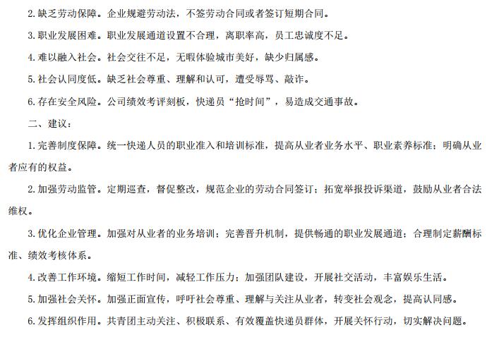 問題四:調(diào)研結(jié)束后,共青團(tuán)H省委擬起草- -份關(guān)于促進(jìn)快遞配送從業(yè)青年職業(yè)發(fā)展和社會(huì)融入的調(diào)研報(bào)告。假設(shè)你是該調(diào)研組成員,請根據(jù)“給定資料4”,撰寫調(diào)研報(bào)告中“問題”與“建議”這兩部分內(nèi)容的提綱。(25分)