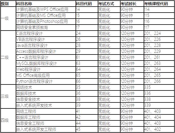 備注:一級網絡安全科目2019年9月首次開考。