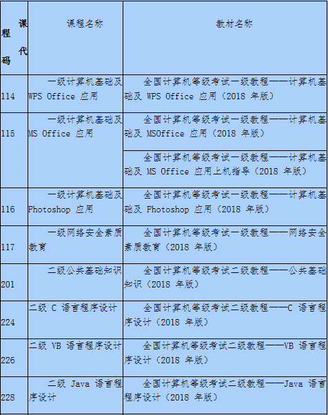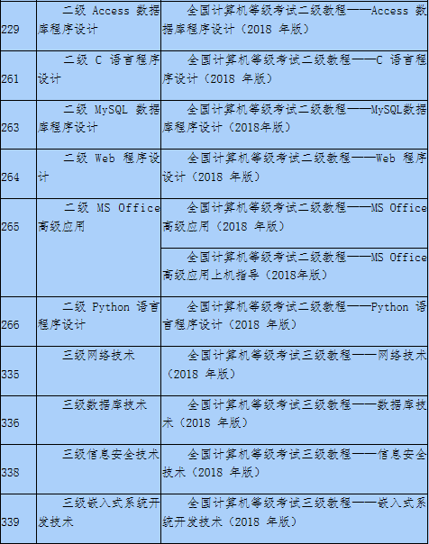 附表3:全國(guó)計(jì)算機(jī)等級(jí)考試課程、教材列表(2018版)