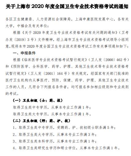 【#衛(wèi)生資格考試# #2020年上海市衛(wèi)生專業(yè)技術(shù)資格考試的通知#】©無憂考網(wǎng)從中國衛(wèi)生人才網(wǎng)獲悉,2020年上海市衛(wèi)生專業(yè)技術(shù)資格考試的通知已公布,報名時間為2019年12月24日-2020年1月13日,具體詳情如下: