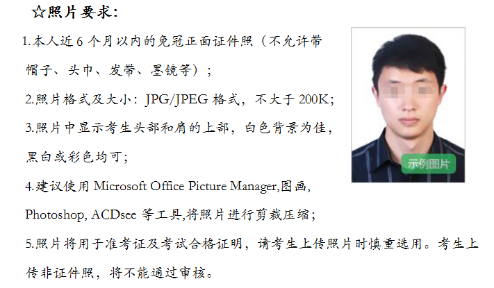 5.所有考生筆試報名前需要重新進行注冊、填報個人信息并上傳個人照片,重新注冊操作不影響考生已獲得的成績。注冊上傳照片將用于準考證和考試合格證明,請考生上傳照片時遵守規(guī)范、慎重選用。