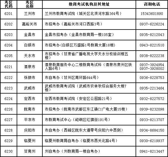 5.全省各考區(qū)教育考試機構(gòu)地址及聯(lián)系電話
