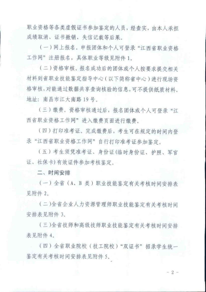 4.“全省企業(yè)人力資源管理師統(tǒng)一鑒定”的具體時間由省中心在“江西省職業(yè)資格工作網(wǎng)”網(wǎng)上報名端口內(nèi)另行公布。5.“全省職業(yè)院校(技工院校)“雙證書”招錄學(xué)生統(tǒng)一鑒定”的具體時間由省中心在“江西省職業(yè)資格工作網(wǎng)”網(wǎng)上報名端口內(nèi)另行公布。