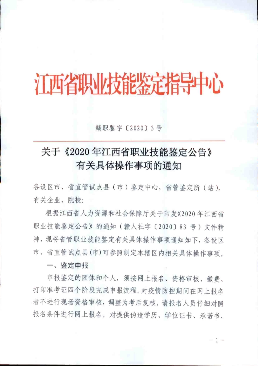 2020年江西省職業(yè)技能鑒定公告及有關(guān)具體操作事項(xiàng)的通知(含人力資管理師考試)