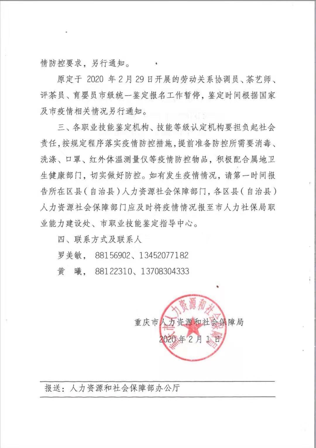 2020疫情防控期間重慶暫停開展人力資源.docx
