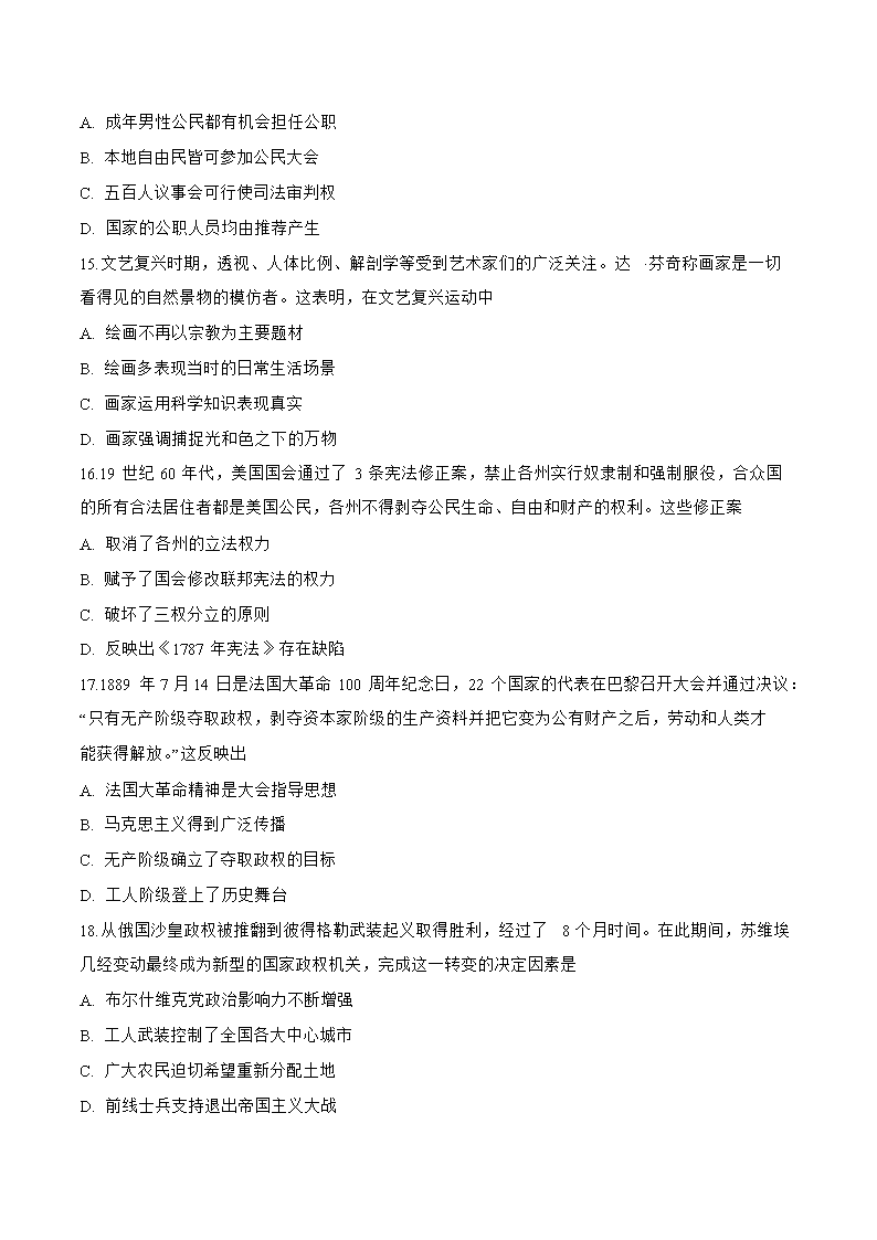 【文檔名稱】 2019年海南卷歷史高考真題及答案(Word版).doc