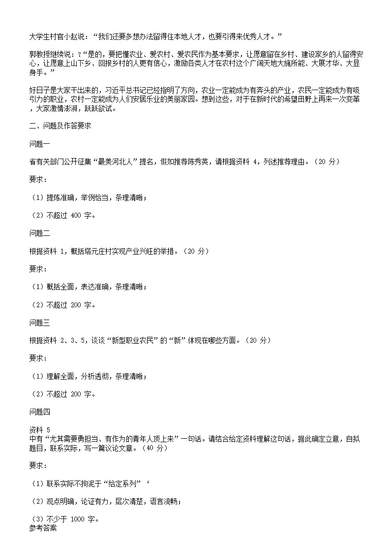 2019年河北公務(wù)員申論考試真題及答案(鄉(xiāng)鎮(zhèn))(Word版)