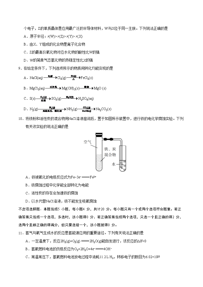 【文檔名稱】 2019年江蘇高考化學(xué)真題及答案(Word版).doc