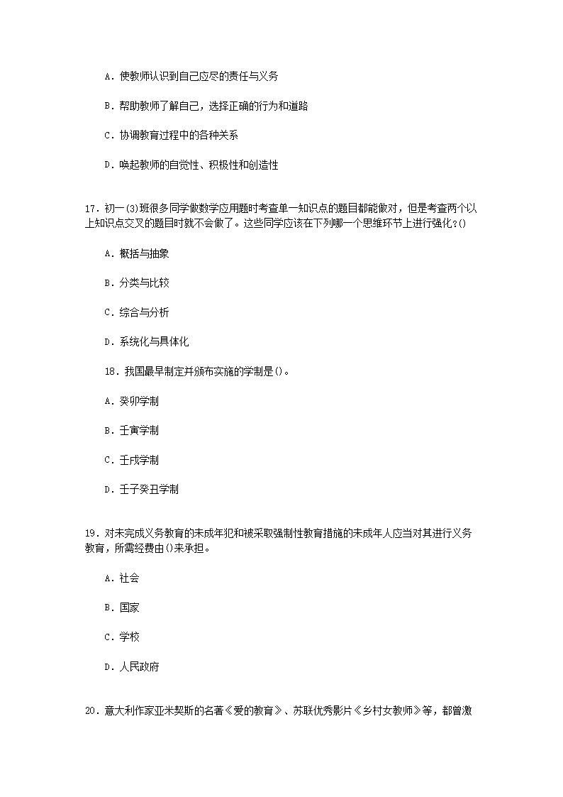 2017陜西特崗教師招聘考試中學(xué)教育基礎(chǔ)理論真題及答案(Word版)