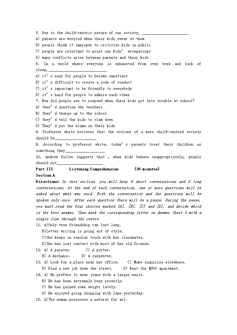 【文檔預(yù)覽】 無(wú)憂考網(wǎng)整理發(fā)布2008年12月英語(yǔ)四級(jí)真題及答案(Word版),前五頁(yè)預(yù)覽如下: