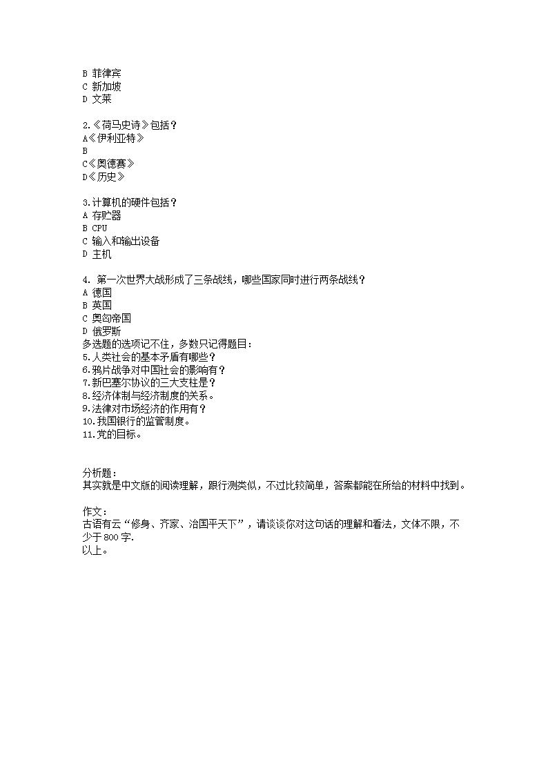 - 2011年中國(guó)建設(shè)銀行校園招聘考試基本能力測(cè)試真題及答案