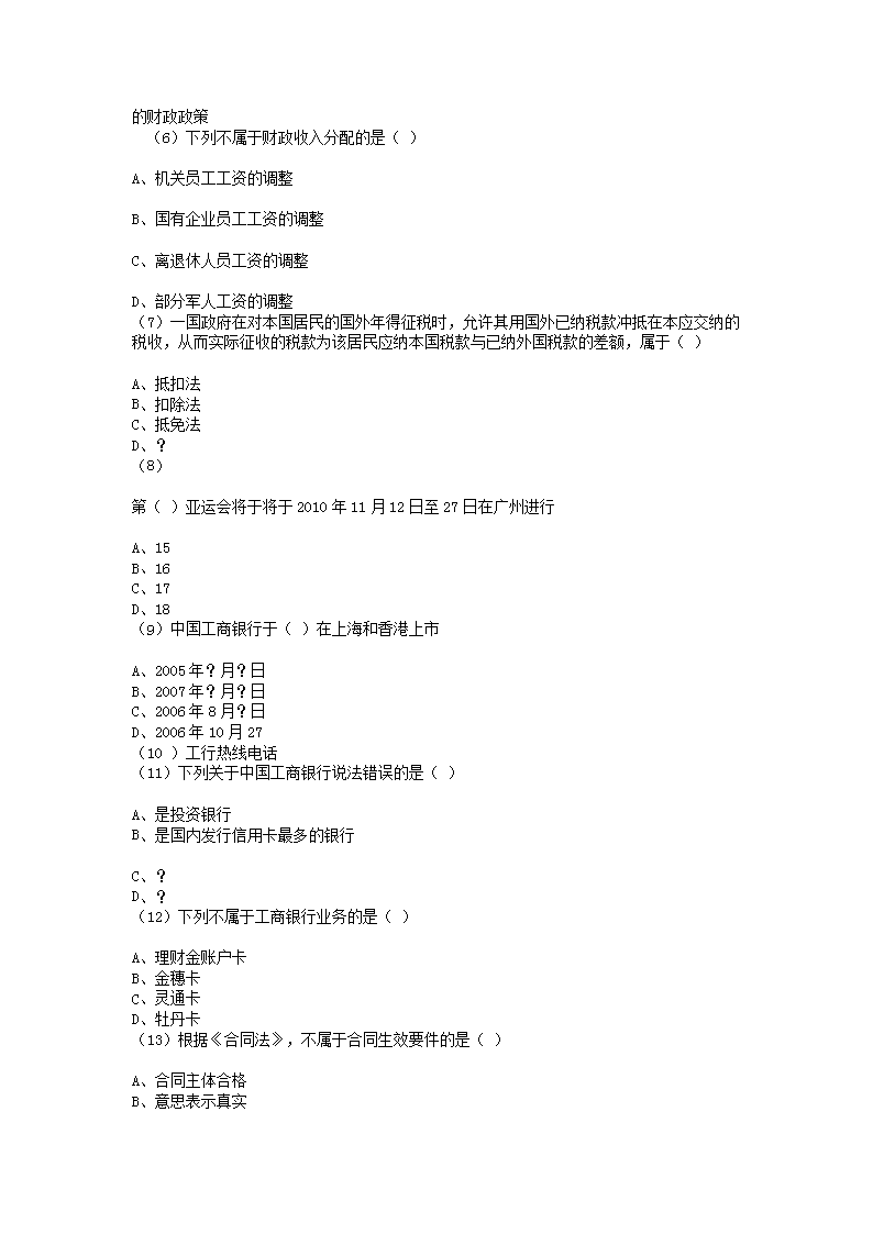 【文檔名稱】 2010年工商銀行清遠(yuǎn)分行筆試真題(Word版).doc