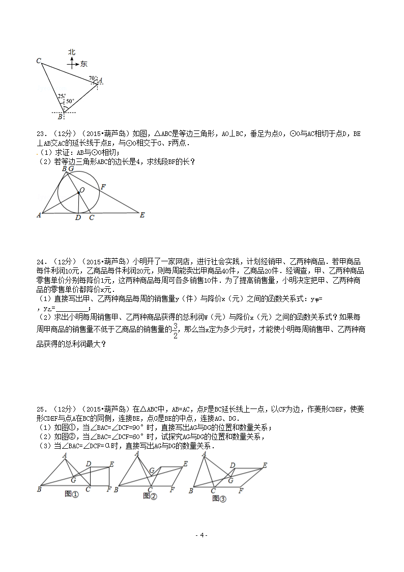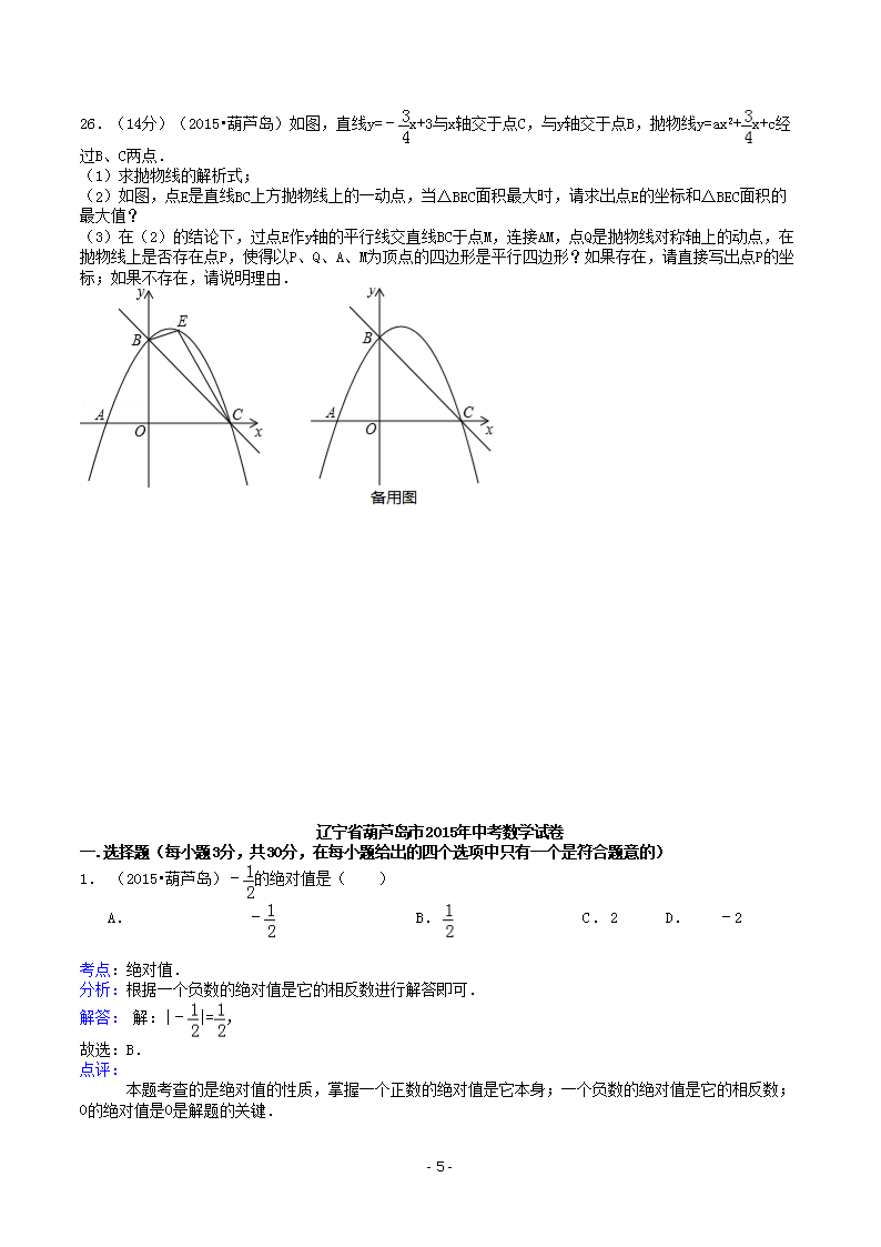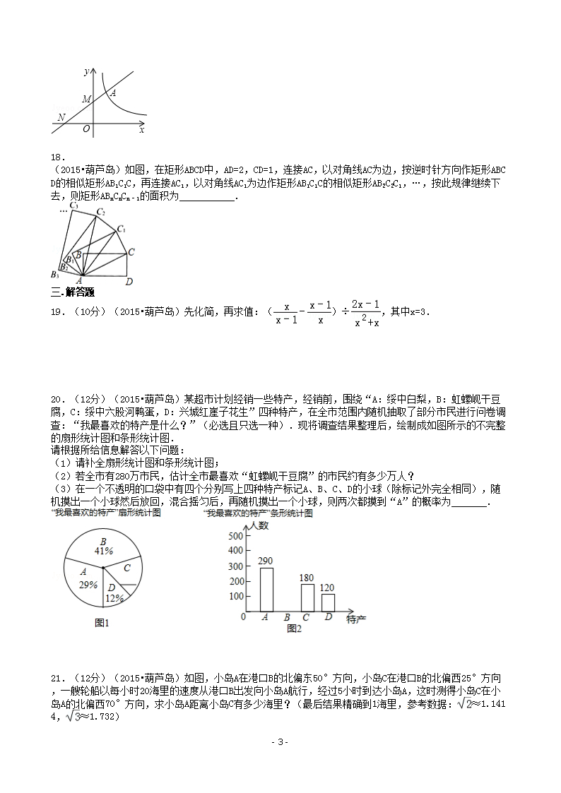 【文檔名稱】 2015年遼寧省葫蘆島市中考數(shù)學真題及答案(Word版).doc