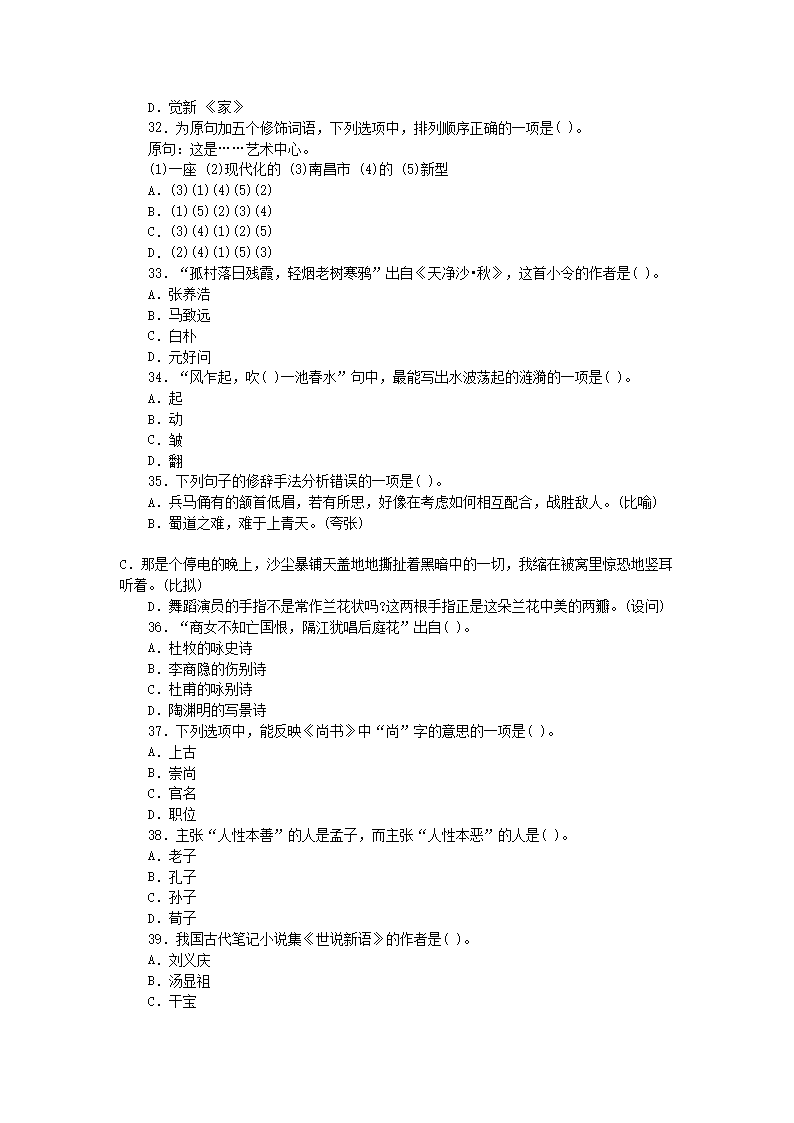 【文檔名稱】 2016江西特崗教師招聘考試小學語文真題(Word版).doc