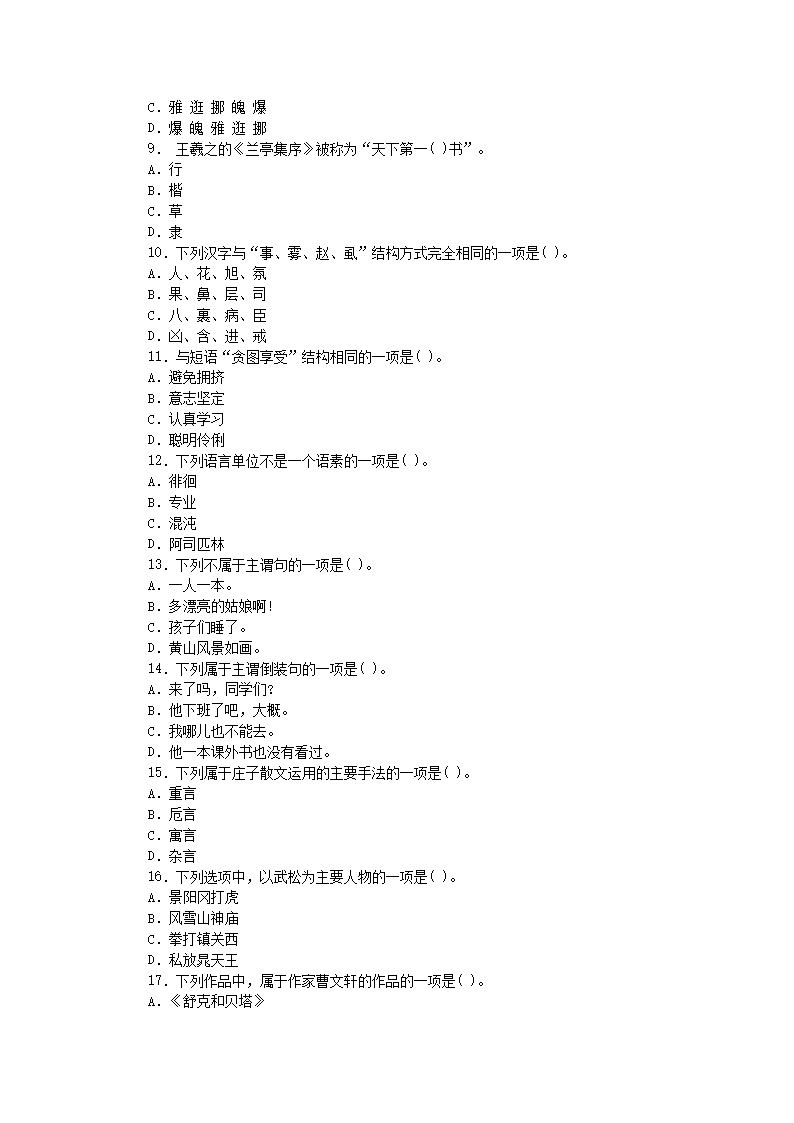 【文檔預(yù)覽】 無憂考網(wǎng)整理發(fā)布2016江西特崗教師招聘考試小學語文真題(Word版),前五頁預(yù)覽如下:
