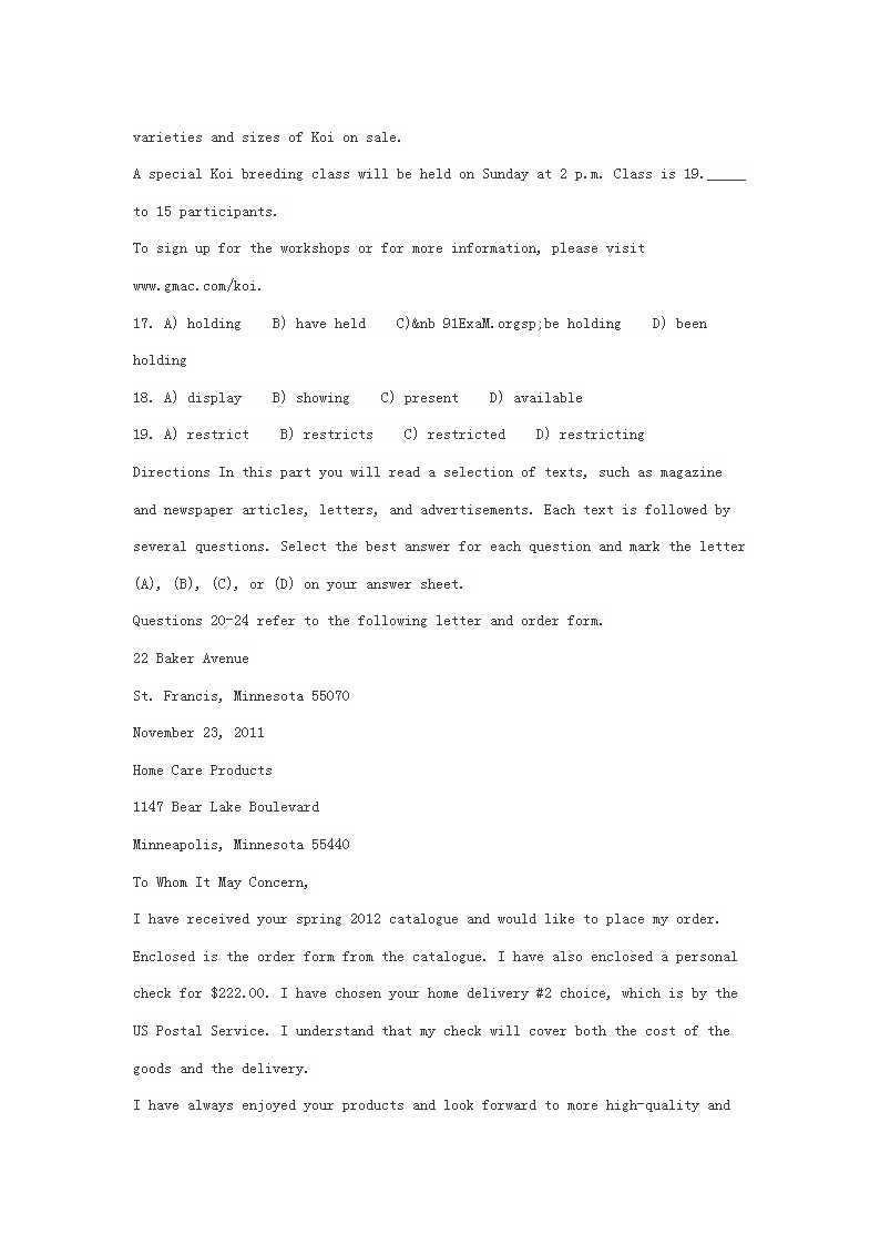 【文檔預(yù)覽】 無憂考網(wǎng)整理發(fā)布2014年中國農(nóng)業(yè)銀行秋季招聘考試英語單元真題含答案(Word版),前五頁預(yù)覽如下: