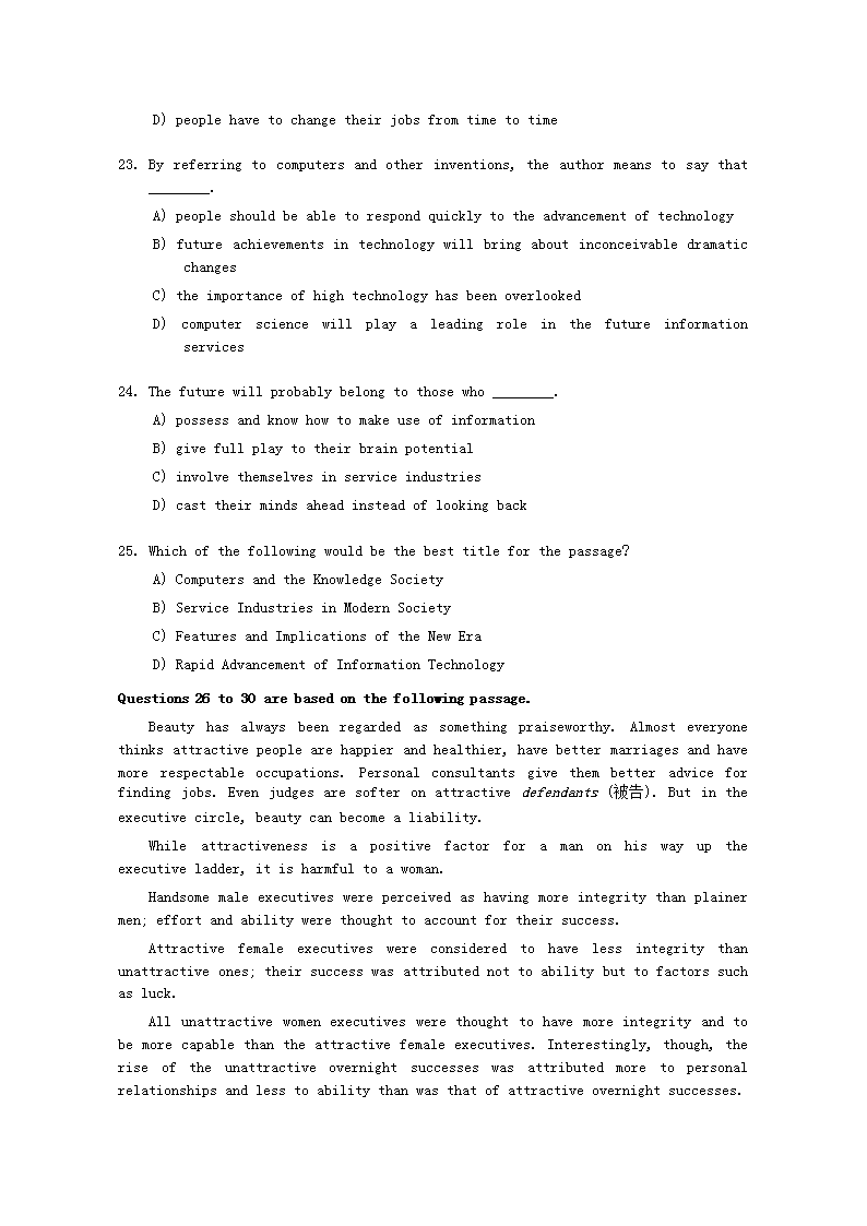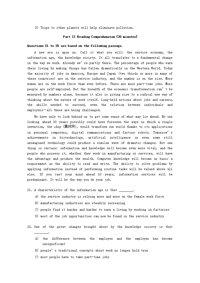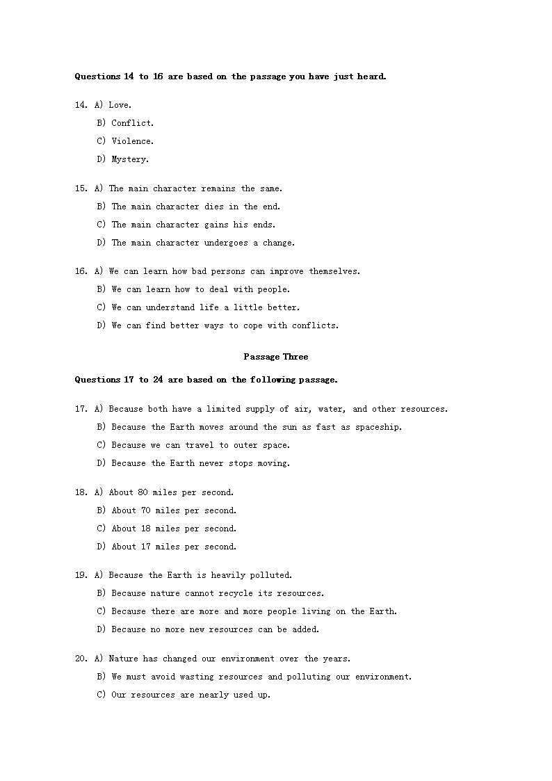 【文檔預覽】 無憂考網(wǎng)整理發(fā)布1995年6月英語六級真題及答案(Word版),前五頁預覽如下: