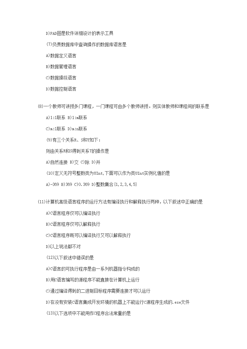 【文檔預(yù)覽】 無憂考網(wǎng)整理發(fā)布2011年3月全國計算機二級C語言考試真題及答案(Word版),前五頁預(yù)覽如下: