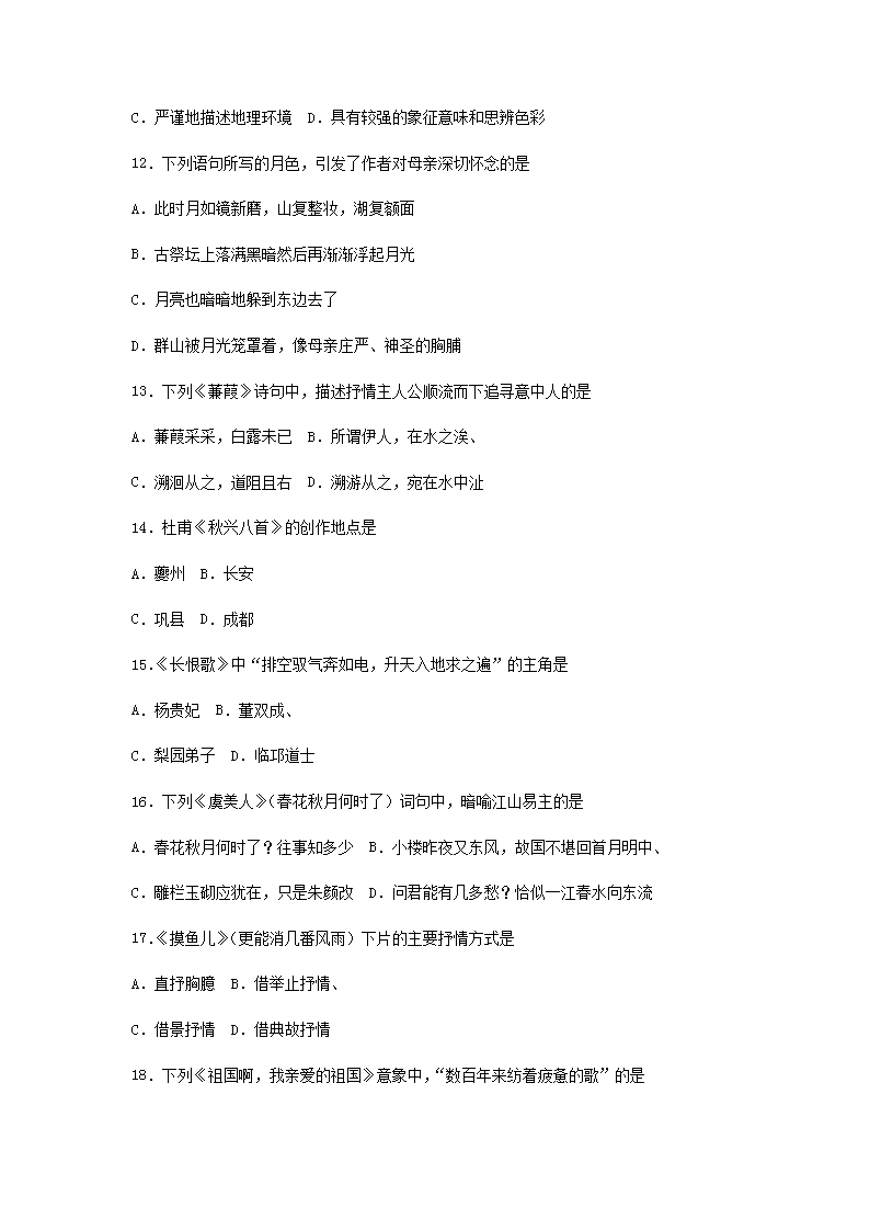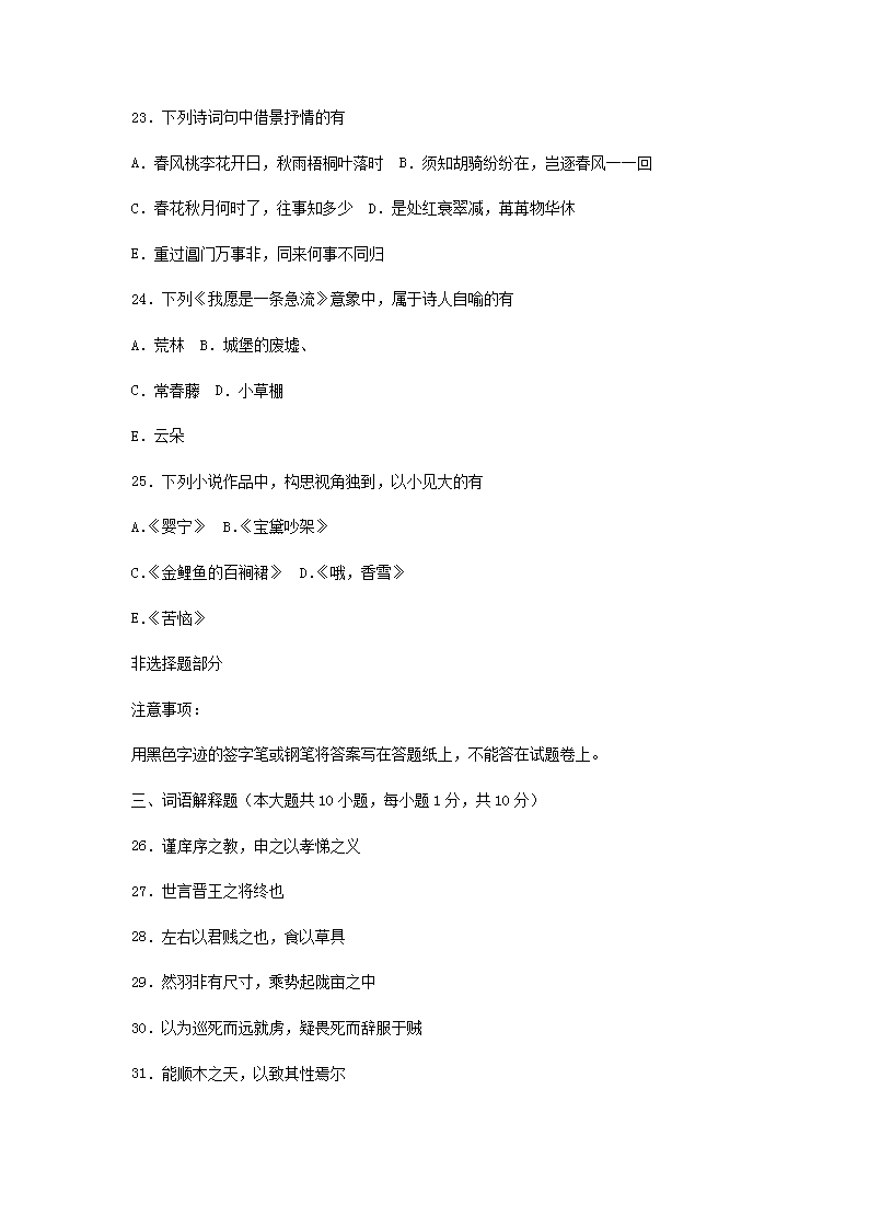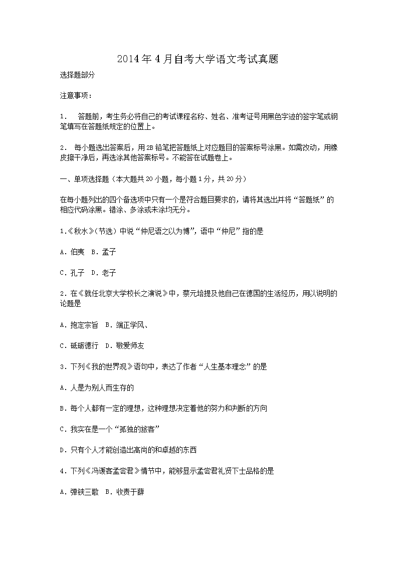 【文檔名稱】 2014年4月自考大學(xué)語文考試真題(Word版).doc