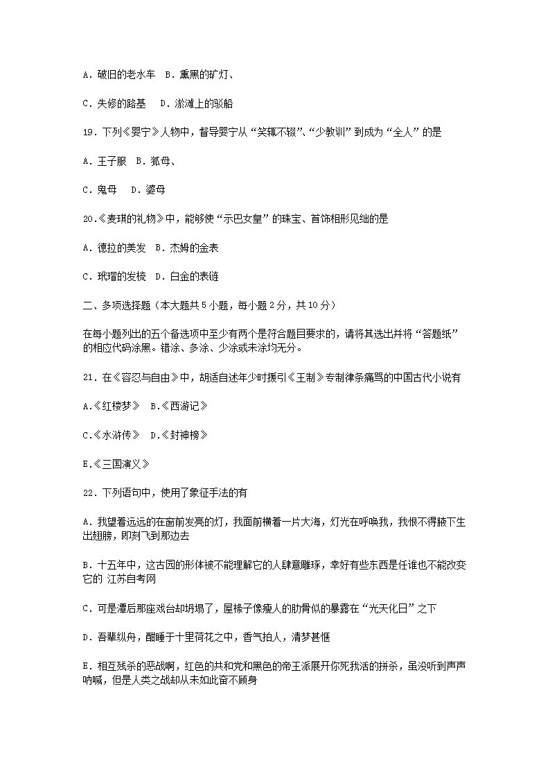 【文檔預(yù)覽】 無憂考網(wǎng)整理發(fā)布2014年4月自考大學(xué)語文考試真題(Word版),前五頁預(yù)覽如下: