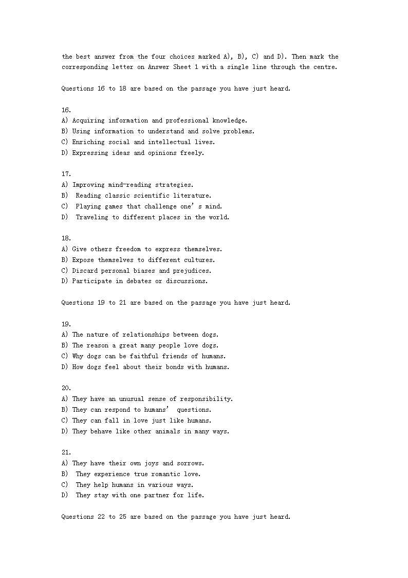【文檔預(yù)覽】 無(wú)憂考網(wǎng)整理發(fā)布2019年12月英語(yǔ)四級(jí)真題及答案第三套(Word版),前五頁(yè)預(yù)覽如下: