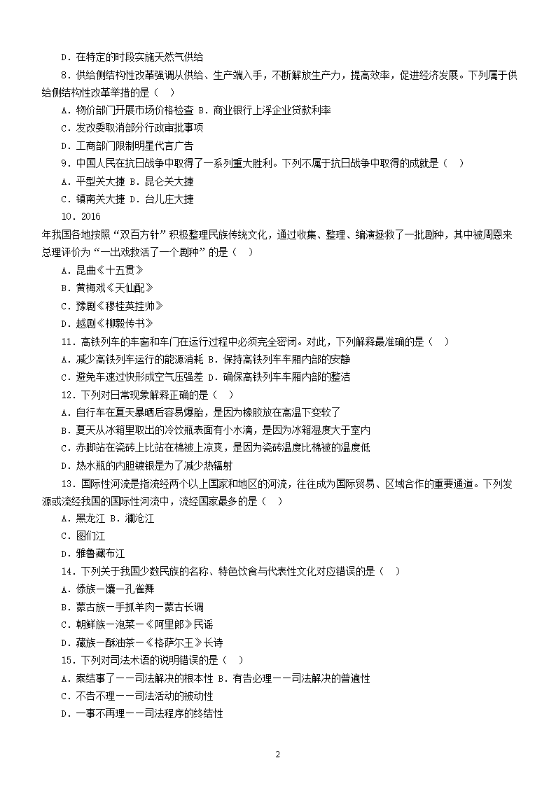 【文檔名稱】 2016年江蘇公務員行測考試真題及答案C類(Word版).doc