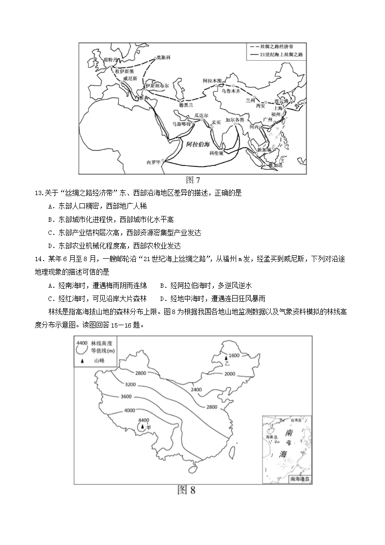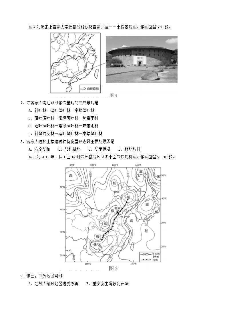 【文檔名稱】 2015江蘇高考地理真題及答案(Word版).doc