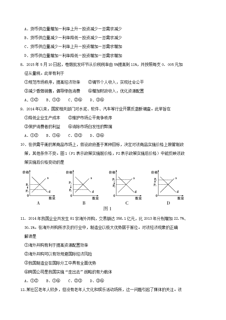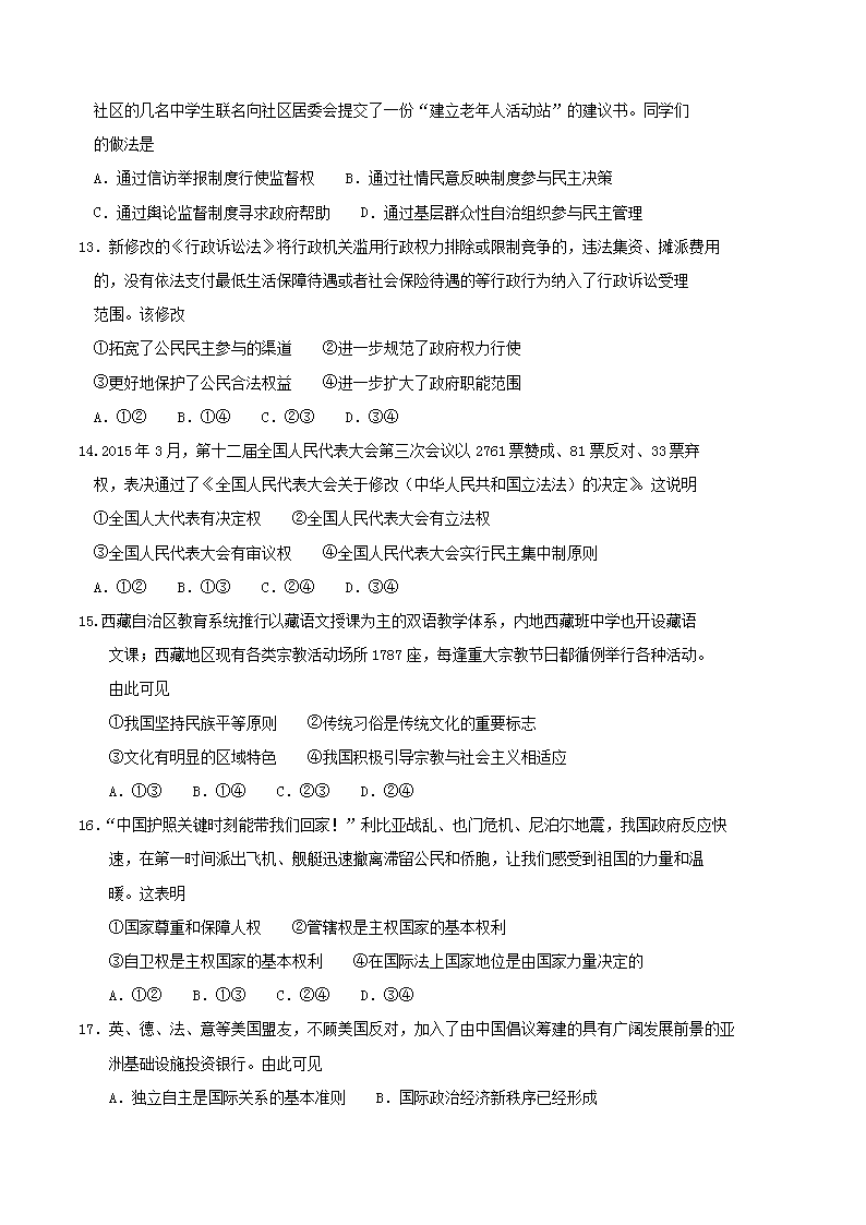 【文檔名稱】 2015江蘇高考政治真題及答案(Word版).doc